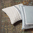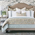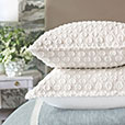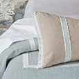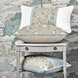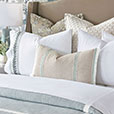 走進安柏林柔和,空靈的世界。中性色調(diào)的亞麻和矢車菊藍色織物為精美的植物刺繡和微微的緞帶細節(jié)創(chuàng)造了完美的背景。 安柏林(Amberlynn)脆白色的裝飾枕有定制的天鵝絨裝飾織帶,為外觀增添一抹清新的浪漫氣息。