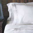 低調(diào)而精致的咖啡色刺繡圖案,在300TC純白而柔滑的面料上溫柔游走,一寸一寸,將耳邊的思念告訴給身體,將腳尖的溫暖傳遞給雙手,周而復(fù)始、浪漫簡(jiǎn)約,成為夜晚的解憂天使。