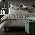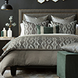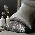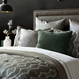 銀灰色的世界就像鋼鐵澆筑的城市,車水馬龍、高樓大廈、穿行的人流化成密密麻麻的線條藏匿于帶有金屬感的面料之上。當(dāng)高級現(xiàn)代的銀灰邂逅墨綠色的天鵝絨抱枕,部落風(fēng)格的ogee曲線帶來城市之外的美麗回聲,在冷硬的世界里綻放出一絲生機,連接城市與自然,摩登與誘惑在這里并行。
