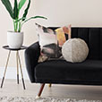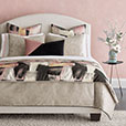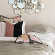 浪漫的粉色配上黑金賦予了艾瑪藝術(shù)的氣質(zhì)。 啞光天鵝絨、有趣的形狀和繪畫印花與閃閃發(fā)光的香檳色背景完美平衡。 如畫般完美的系列與三角形腳凳或半月裝飾枕搭配,打造出更具創(chuàng)意的觸感