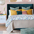 俏皮而泰然自若的查理系列為您的裝飾增添一抹流行色彩。柔粉色、水鴨藍色和芥末黃的生動調色板與異想天開的水磨石印花被套相得益彰。采用了獨特的扇形拼色設計的天鵝絨抱枕,搭配性強又獨特,為兒童房和年輕人的審美帶來活潑的魅力。