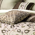 奢華的真絲面料以及極致的細(xì)節(jié)設(shè)計(jì),Michon(米瓊)系列將普通的臥室打造成了一個(gè)貴賓尊享的空間。采用四種不同顏色的真絲面料,并配以繡花、立體圖形和原生態(tài)圖形,獨(dú)特的球形墜飾和金屬吊環(huán)配飾,以及手繪靠枕,都是Michon(米瓊)的亮點(diǎn)。被套上藤形的繡花圖案絲質(zhì)面料,枕頭上的細(xì)褶和裝飾靠墊,窗簾的設(shè)計(jì)和橢圓形的軟椅,更使它令人刮目。