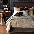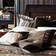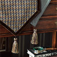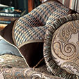 博威爾將深咖色與藍(lán)色融入渦紋圖案以及犬牙紋形中,配以精致的枕頭,更突顯其別具一格的傳統(tǒng)美感。