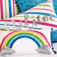 如愛(ài)麗絲夢(mèng)游仙境,進(jìn)入一個(gè)小女孩幻想的繽紛世界!時(shí)髦的五彩紙屑面料,鮮艷的色彩,俏皮的花邊爭(zhēng)奇斗艷,還有童話故事里的獨(dú)角獸和蝴蝶穿梭在彩虹之間,成為孩子的樂(lè)園。