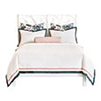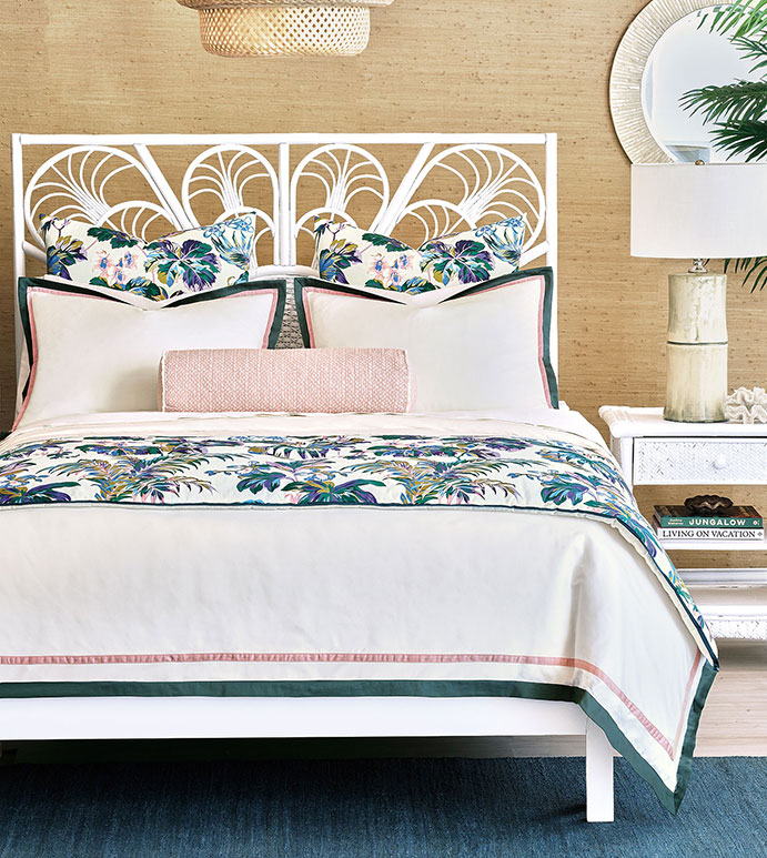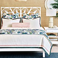 100%有機(jī)意大利埃及棉的緞紋面料,裝飾著精致的緞帶工藝和對比鮮明的綠色邊框,盡享簡單的奢華。而大型植物圖案印花的床尾毯和裝飾歐枕又營造出奢華的質(zhì)感和精致的細(xì)節(jié)。